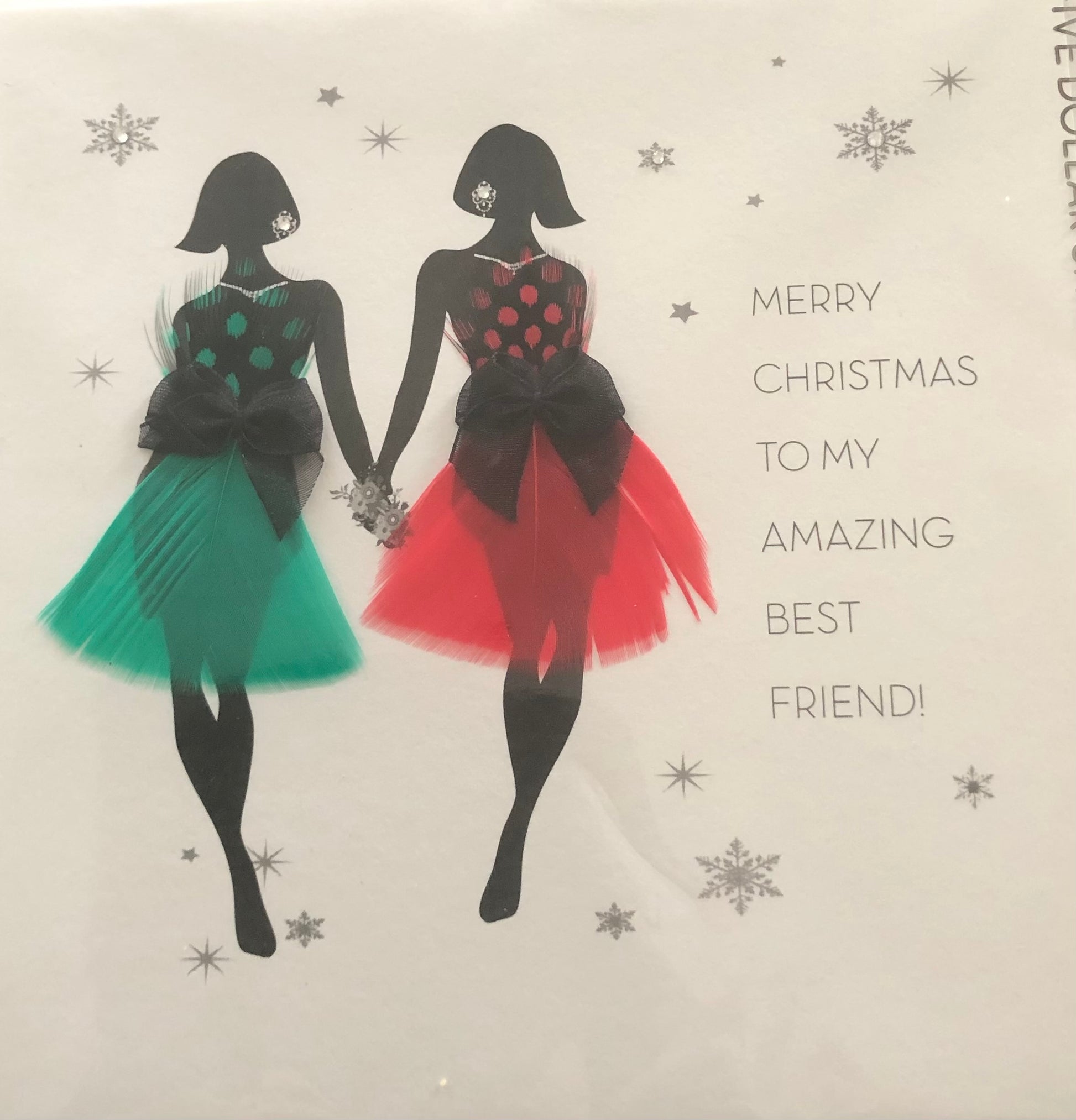 Amazing Best Friend Christmas Card. Handmade with real crystals and real feathers. This stunning card sold for £5.50 in our shop but we offer it for just £3 on here.