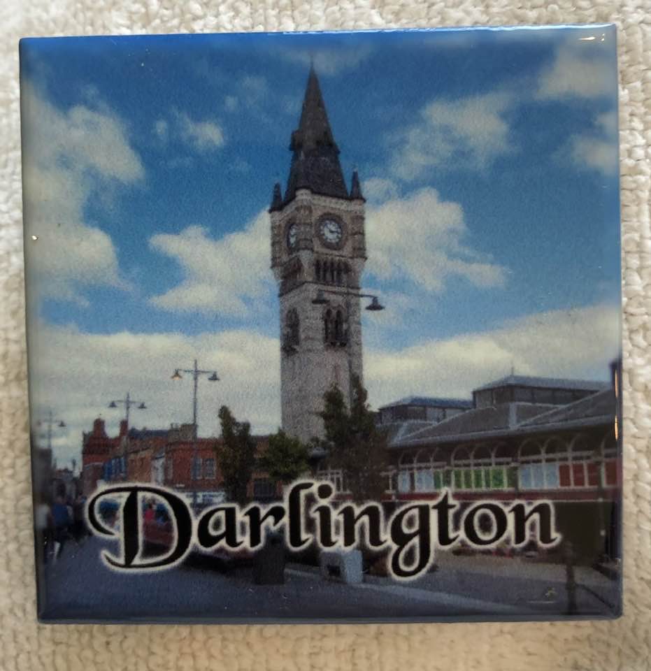 Darlington fridge magnet (2.5 ins/6.35 cm x 2.5 ins/6.36 cm). Costs £2.50.