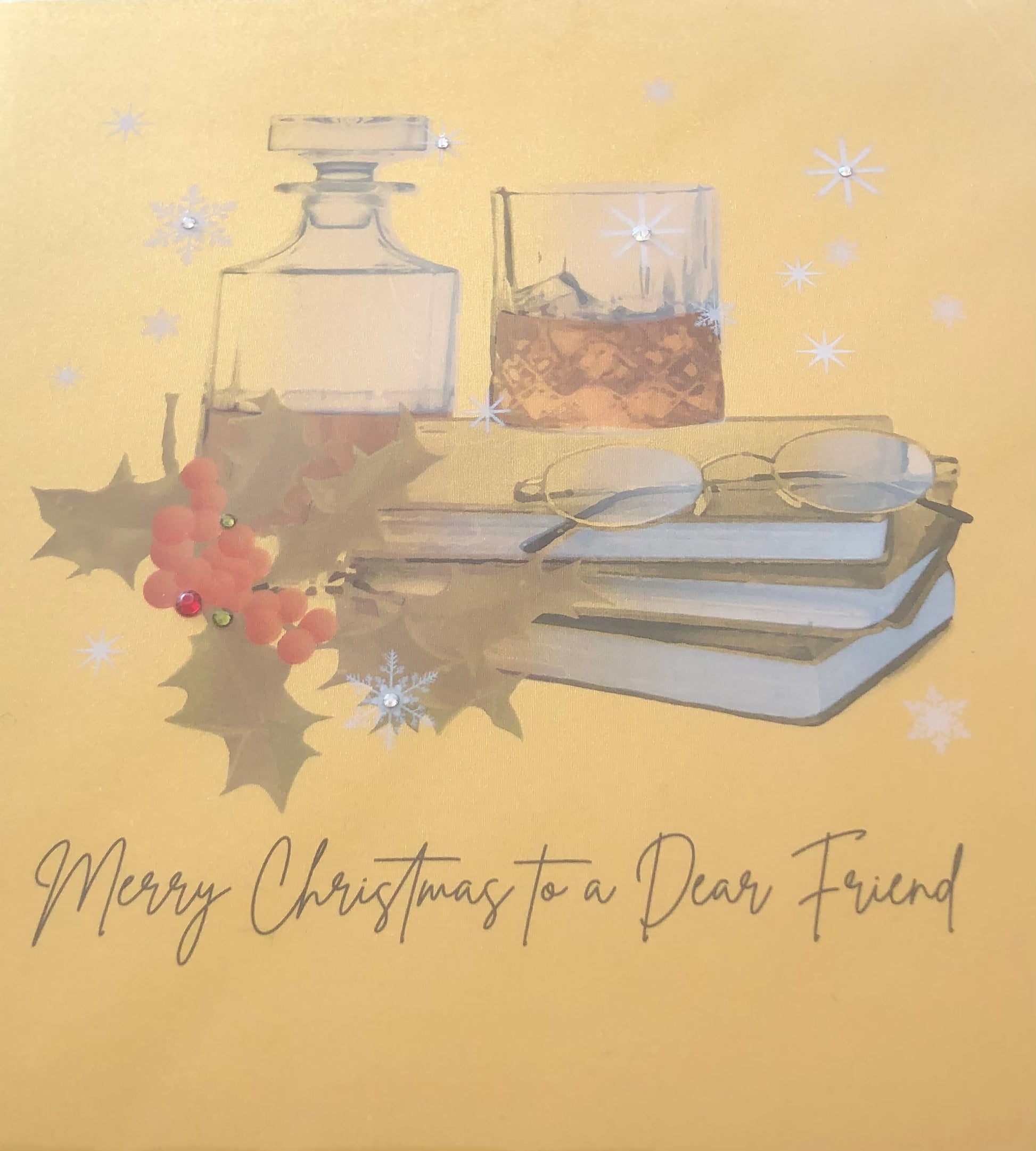 Dear Friend, Christmas Card. Handmade with love on shimmering golden board. This card sold for £5.40 in our shop, but we offer it here for just £3.