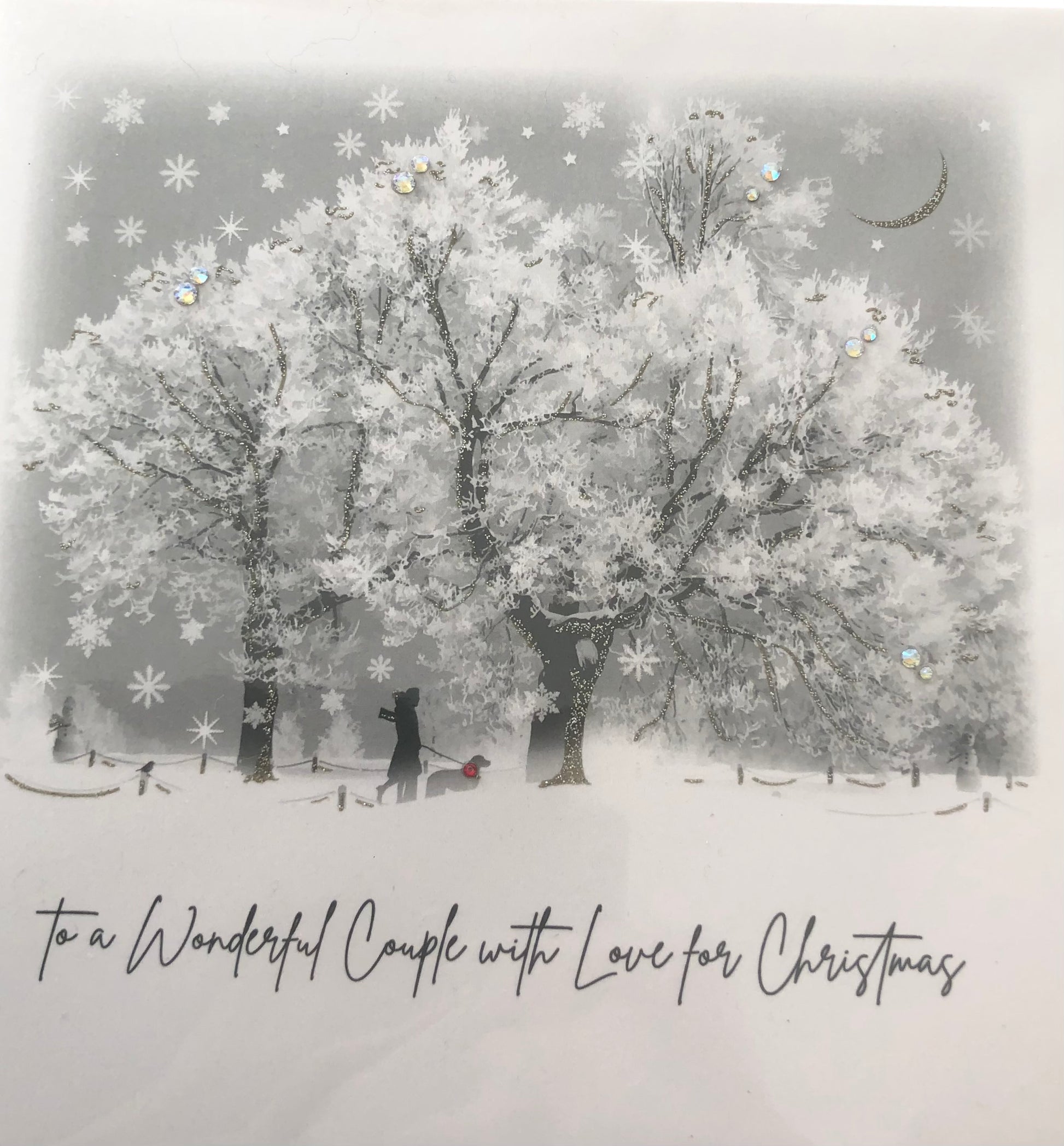 For a Wonderful Couple with Love at Christmas. Snowfall Forest is hand-embellished with genuine crystals and biodegradable glitter. This card was £5.30 in our shop but we offer it here for £3.