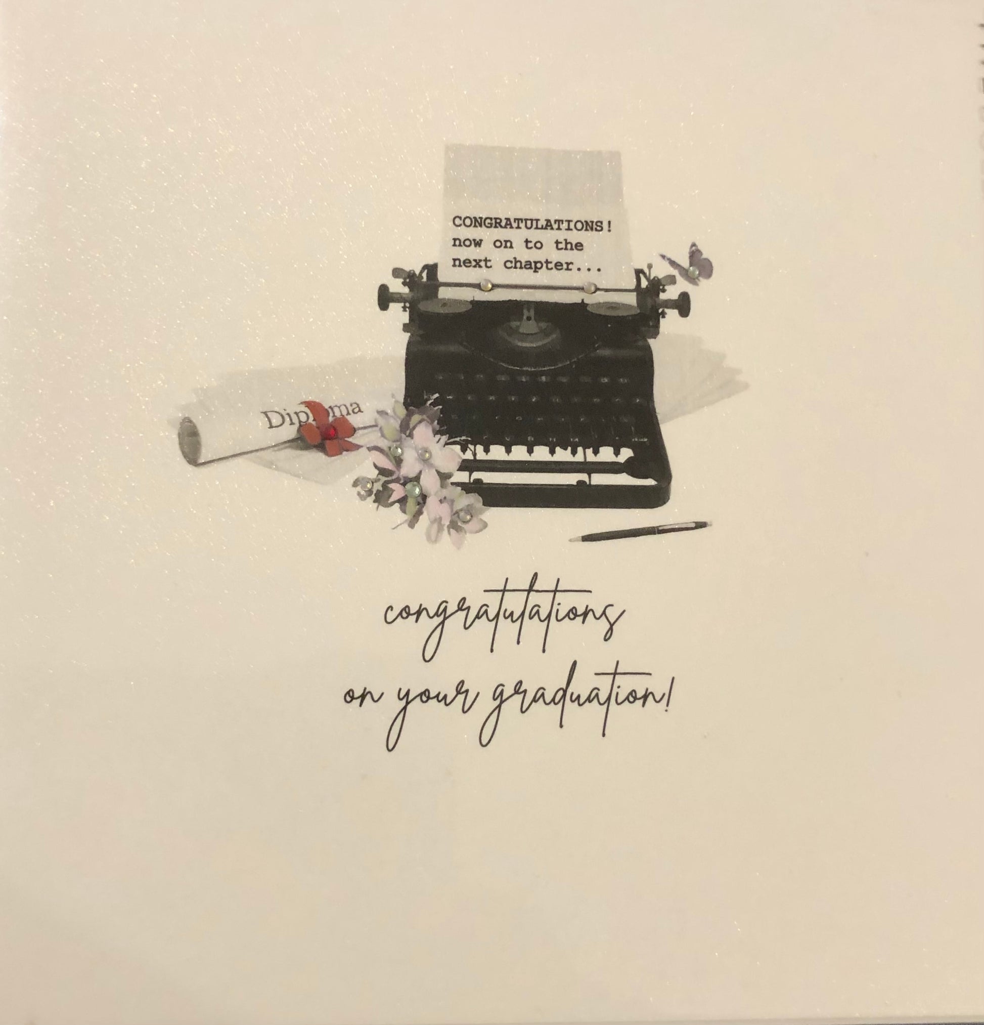 A unique graduation card printed on shimmering board and embellished with tiny crystals