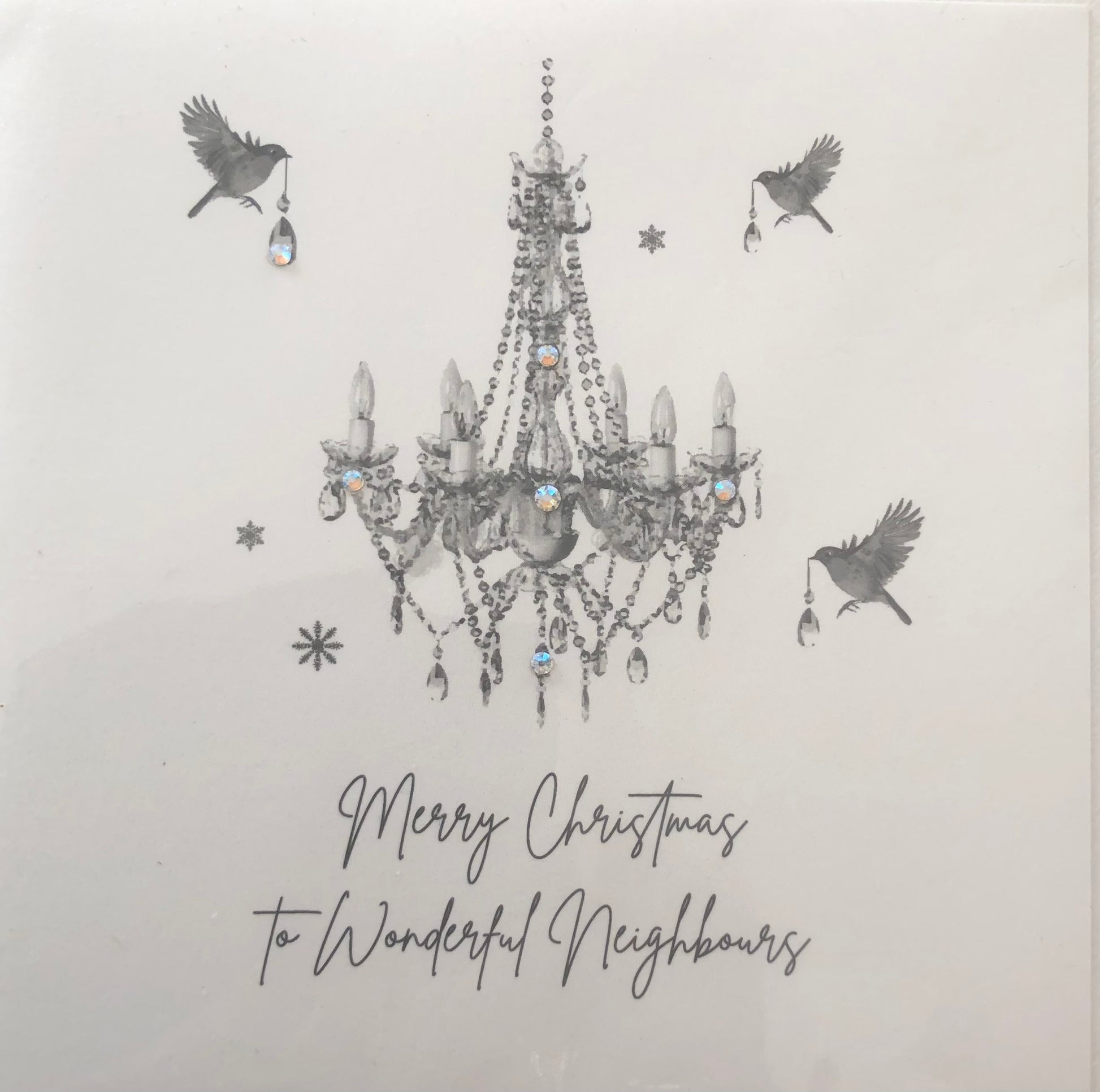 Wonderful Neighbours Christmas Card. Designed on shimmering board and lovingly handmade with genuine crystals. This card was £3.99 in our shop but we offer it here for £2.50.